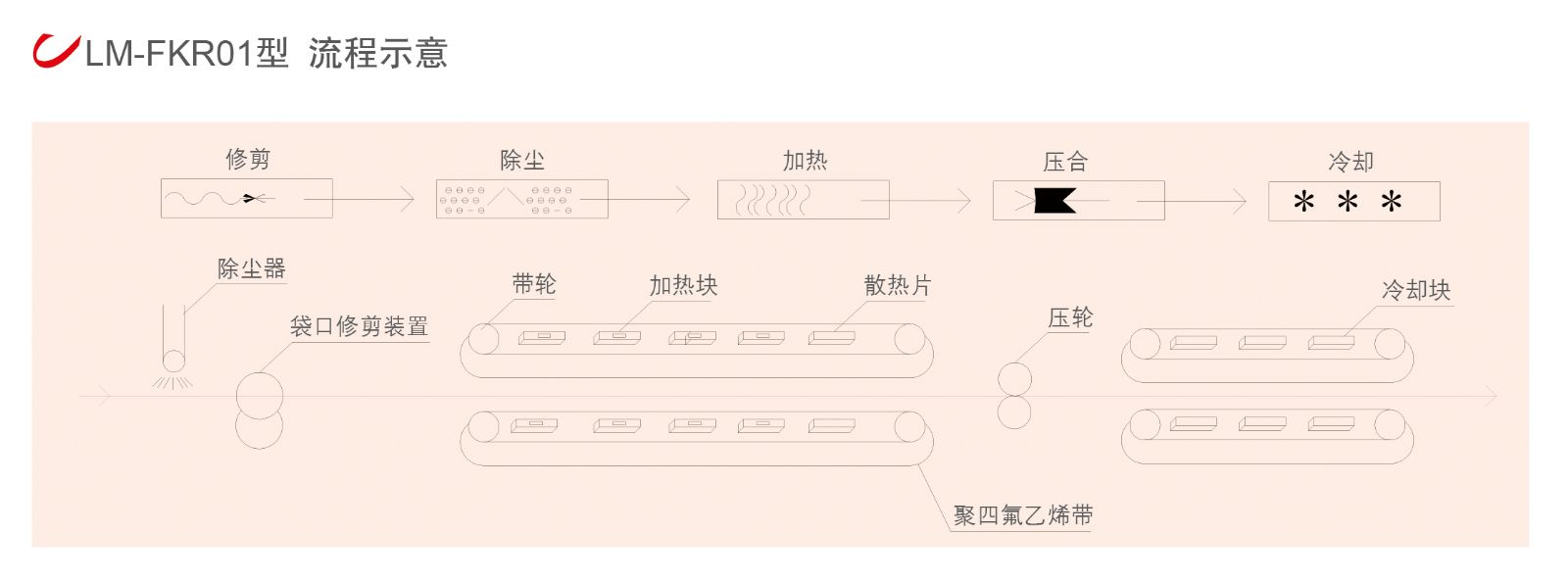 LM-FKR系列連續(xù)式熱合封口機(jī)適用于較厚的PE或PP塑料袋,以及內(nèi)表面涂膠的紙塑復(fù)合袋、牛皮紙袋、鋁塑復(fù)合袋。該機(jī)可按編程自動(dòng)完成包裝袋袋口的除塵、修剪、熱封、壓合、冷卻、計(jì)數(shù)等工序。經(jīng)熱合封口的包裝袋密封性能極佳,可防塵、防蛀、防潮、防污染,使包裝物受到妥善的保護(hù)。